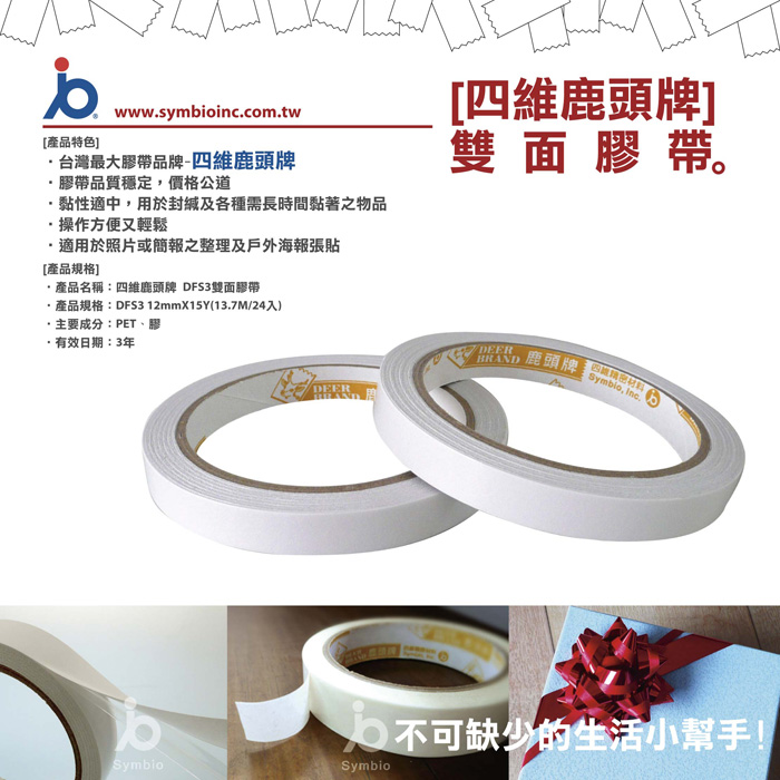 【芥菜籽文具】//四維鹿頭牌 // 雙面膠帶 12mm*15Y 4716268072319 (24捲/盒)
